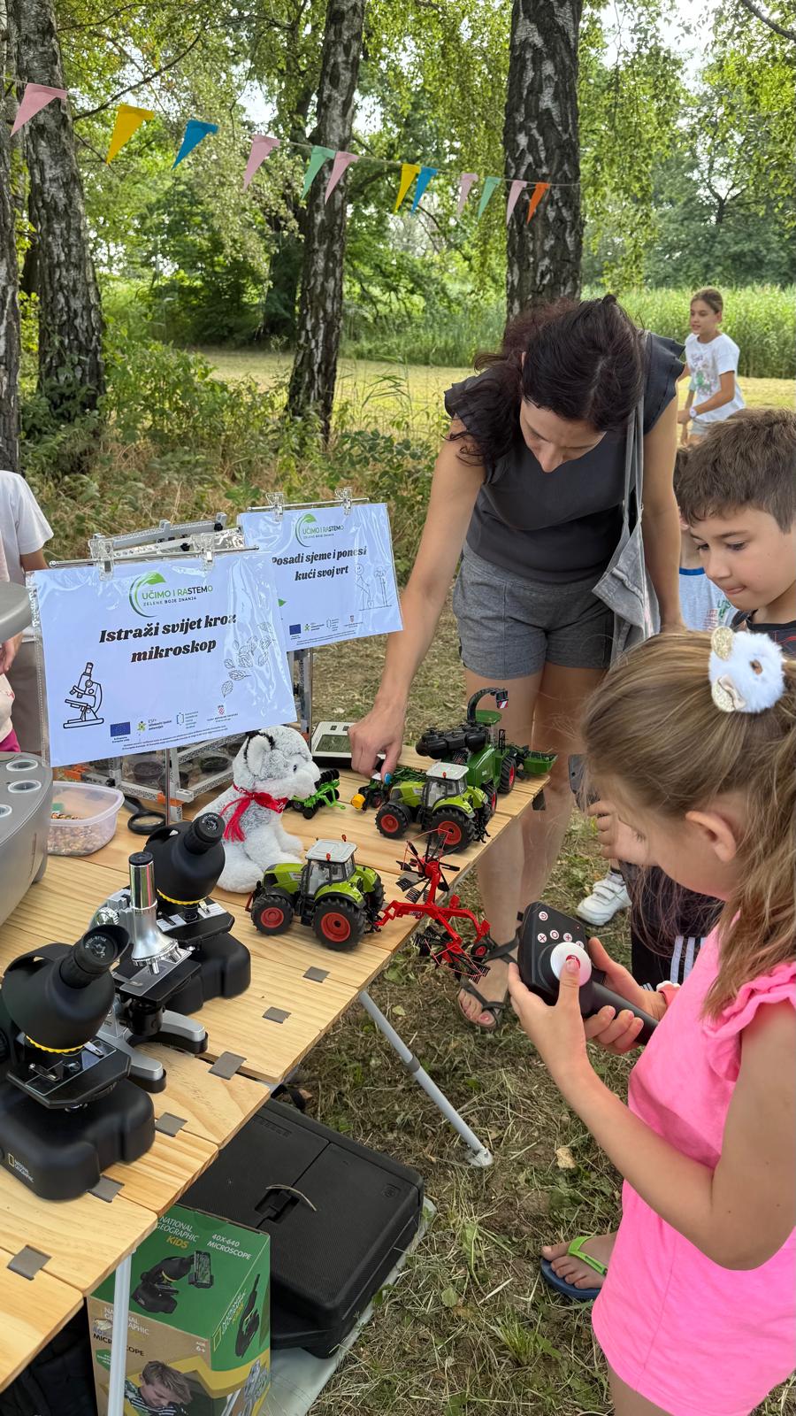 Najmlađi posjetitelji, među kojima je najviše bilo djece vrtićke dobi, s oduševljenjem su sudjelovali u radionicama Zeleni genijalci: poljoprivreda&STEM na kojima su upoznavali biljke, proučavali sjemenke povećalom, učili kako sijati sjeme, zašto je tlo važno za život, pomoću meteorološke stanice mjerili temperaturu, vlagu i količinu padalina, pomoću obnovljivih izvora energije stvarali energiju, učili kako funkcionira hidroponski sustav zavirili u svijet stanica pomoću mikroskopa, učili kako funkcionira staklenik i sl.